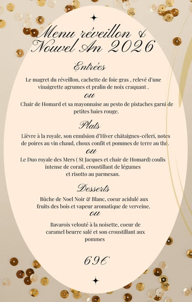 Le Menu du 31 et 01 janvier 2026 à 69€